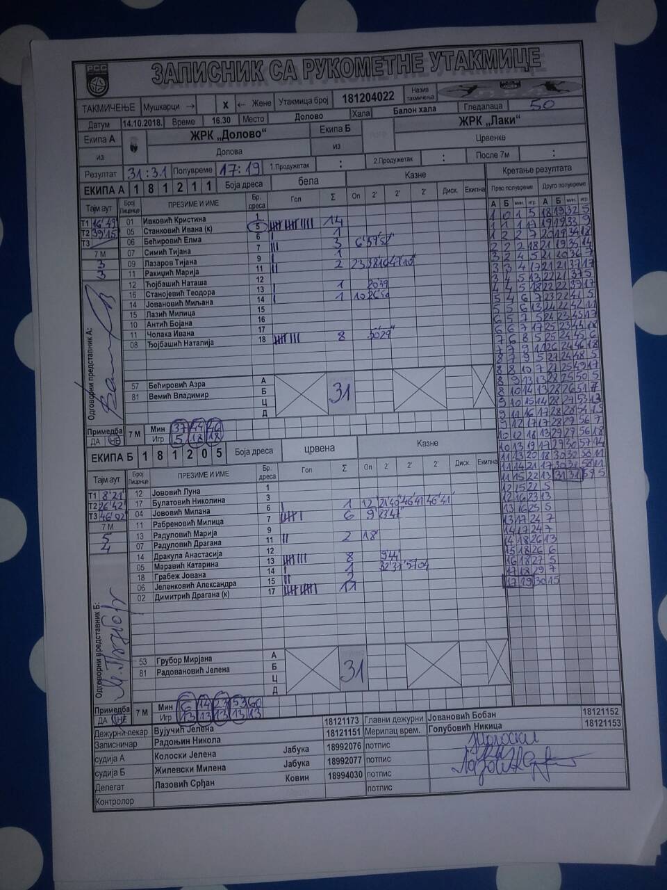 | Igrač | gol | 2` | dk | MVP |