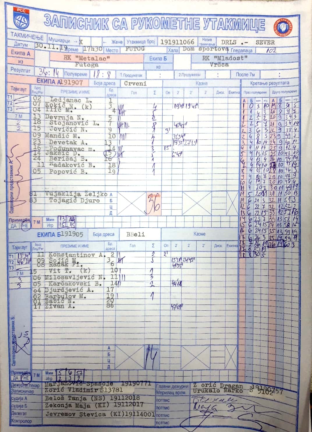 | Igrač | gol | 2` | dk | MVP |