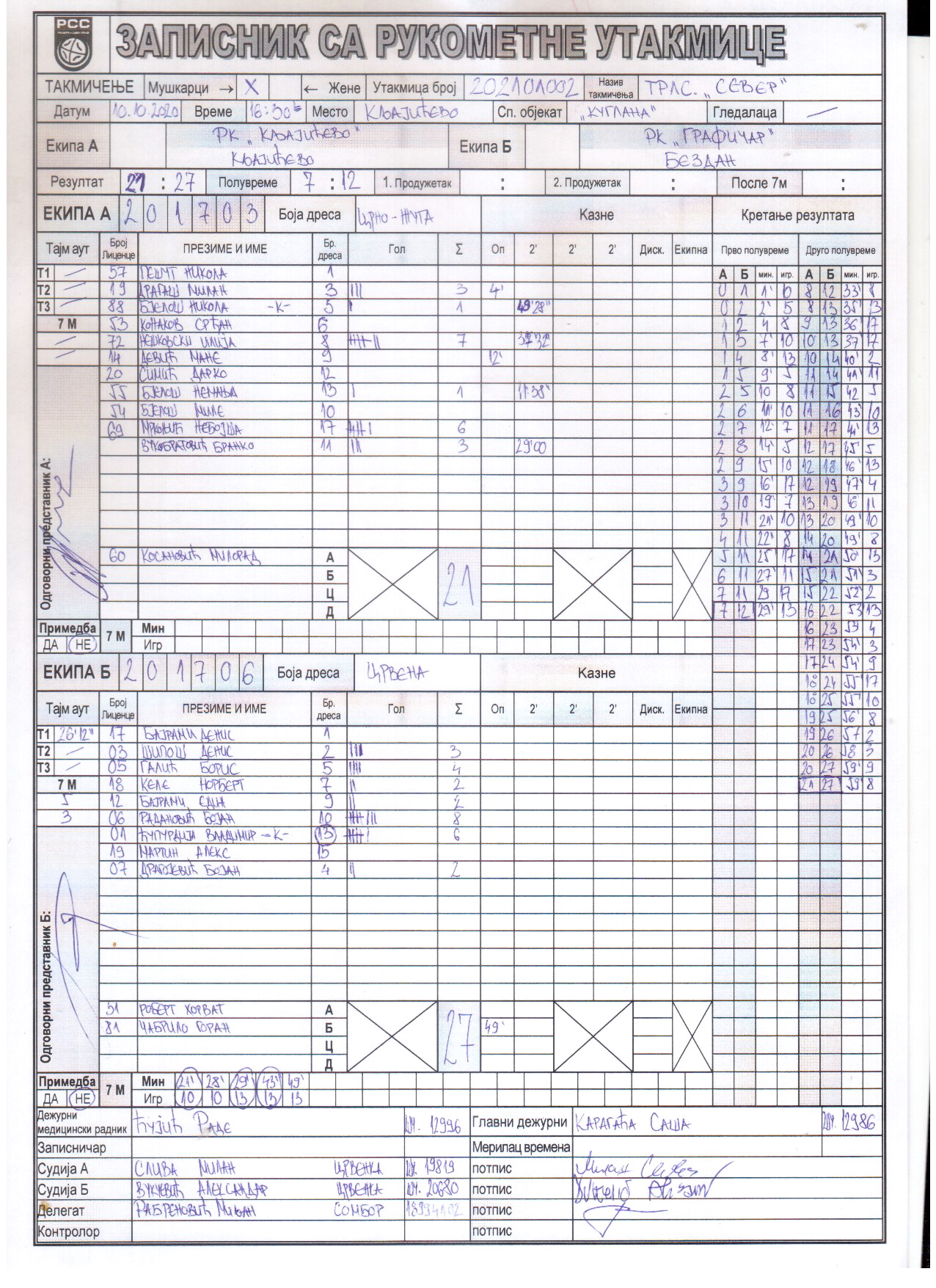 | Igrač | gol | 2` | dk | MVP |