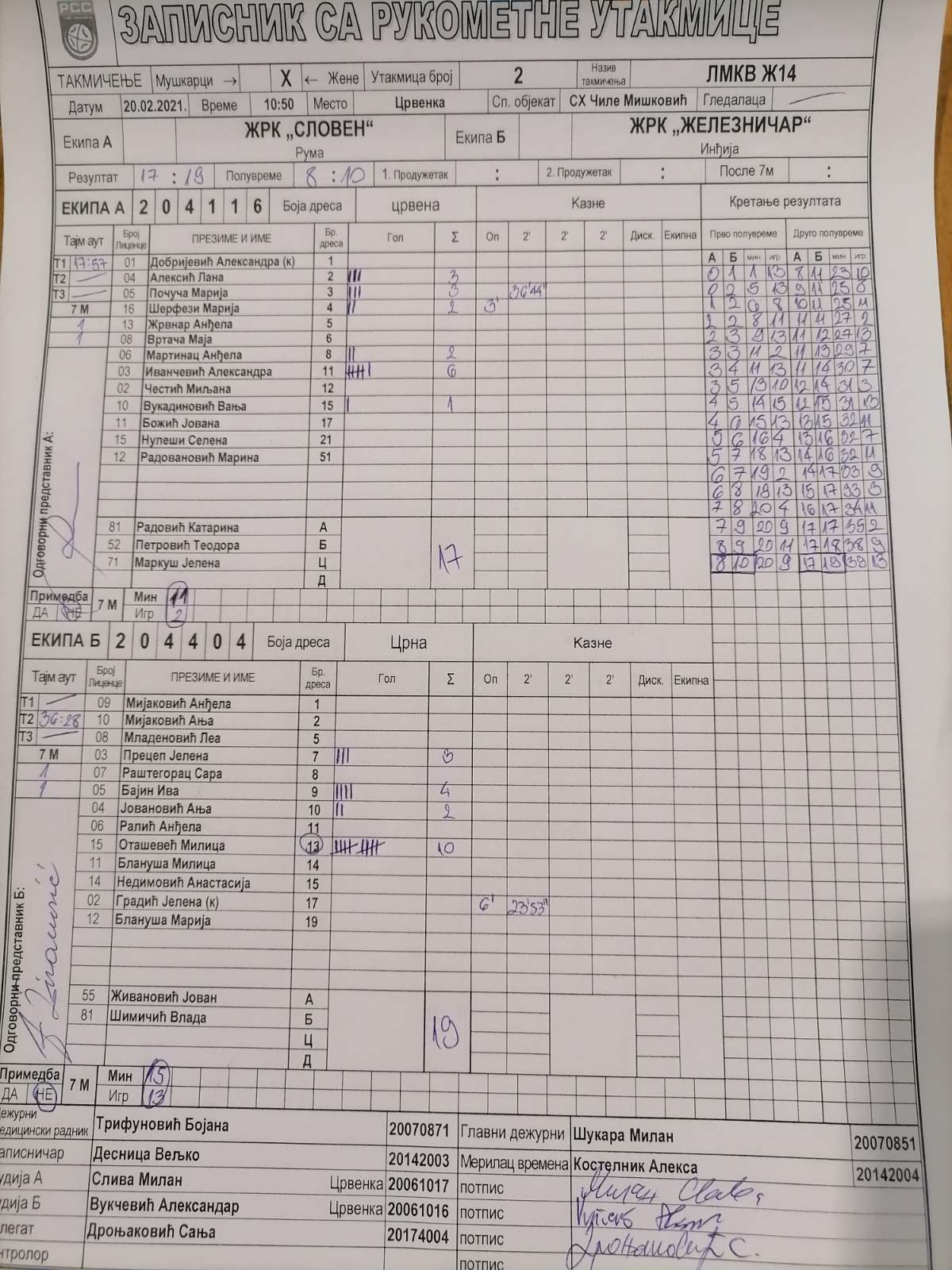 | Igrač | gol | 2` | dk | MVP |