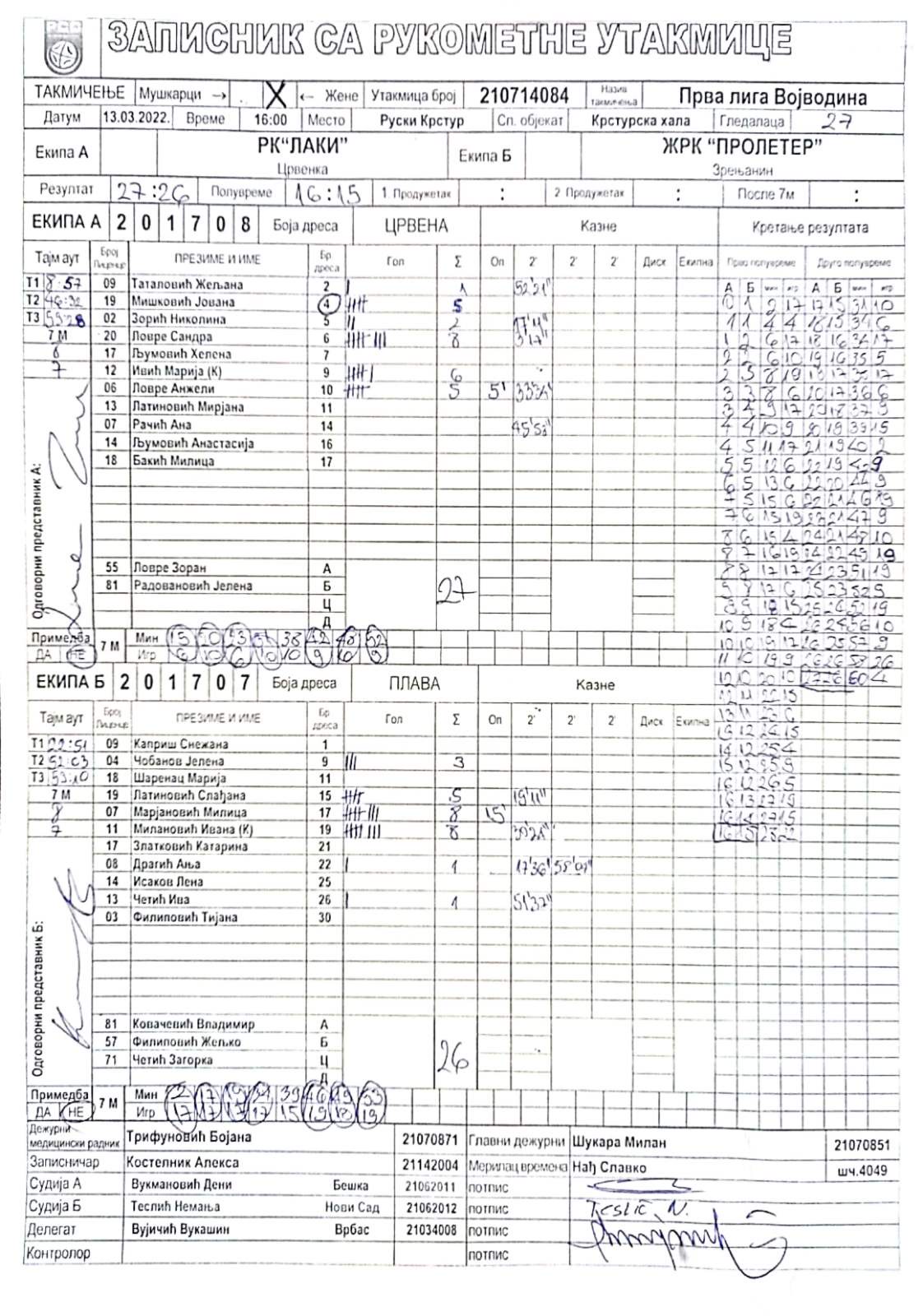 | Igrač | gol | 2` | dk | MVP |