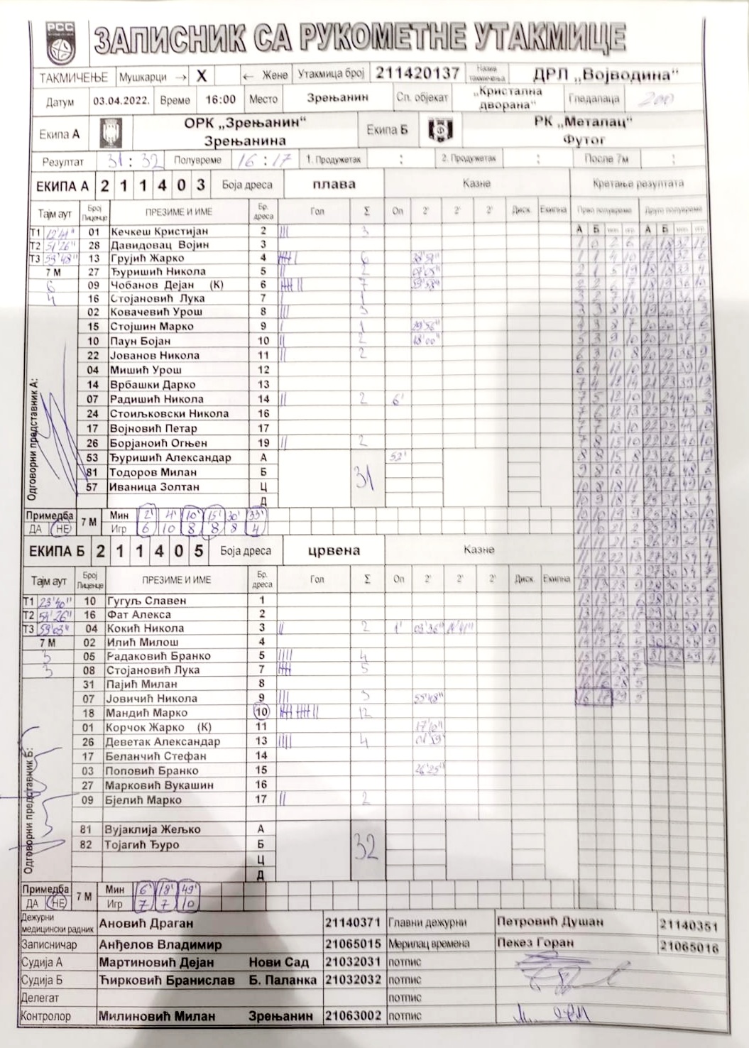 | Igrač | gol | 2` | dk | MVP |