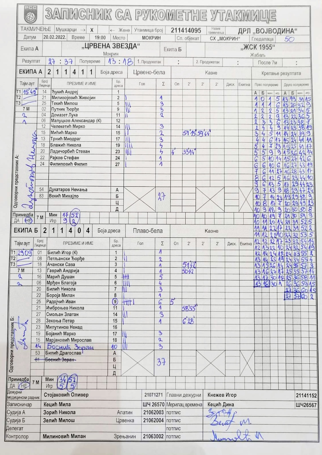 | Igrač | gol | 2` | dk | MVP |