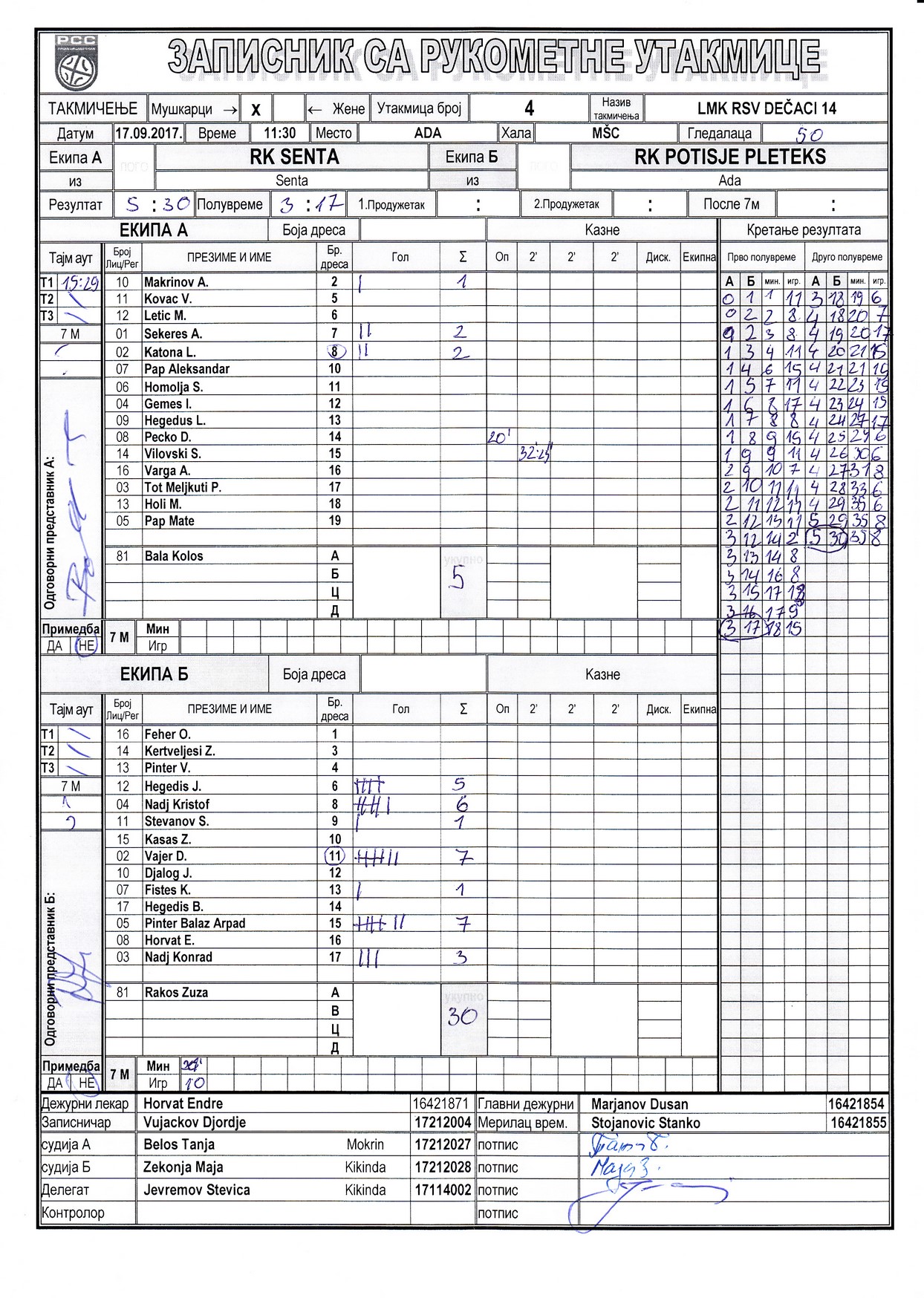 | Igrač | gol | 2` | dk | MVP |