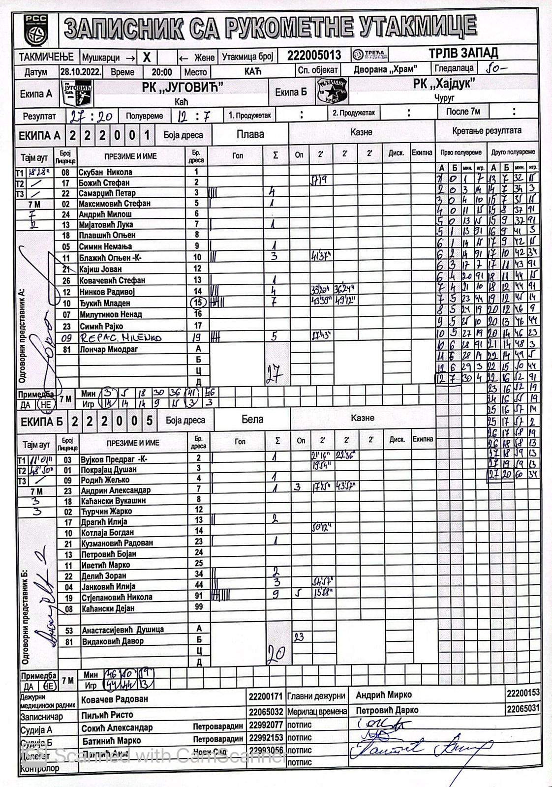 | Igrač | gol | 2` | dk | MVP |
