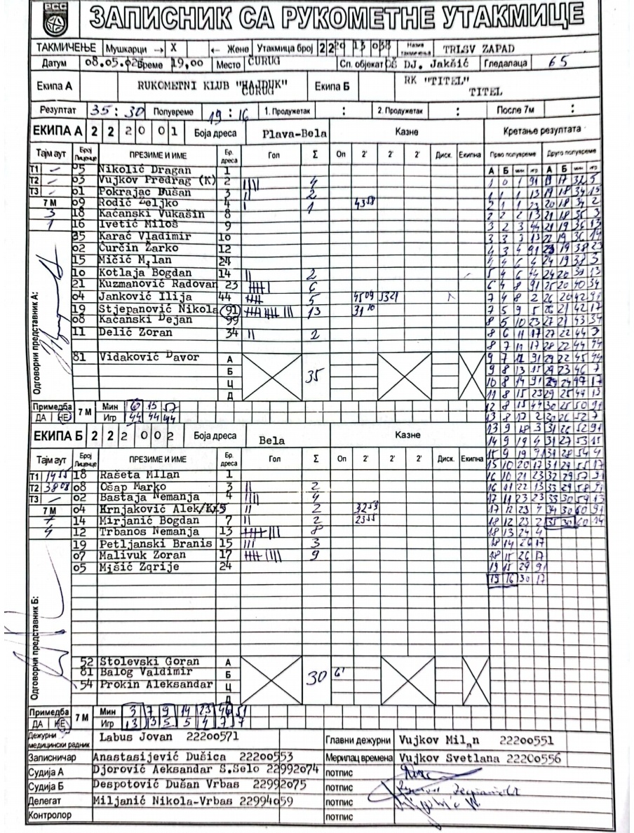 | Igrač | gol | 2` | dk | MVP |