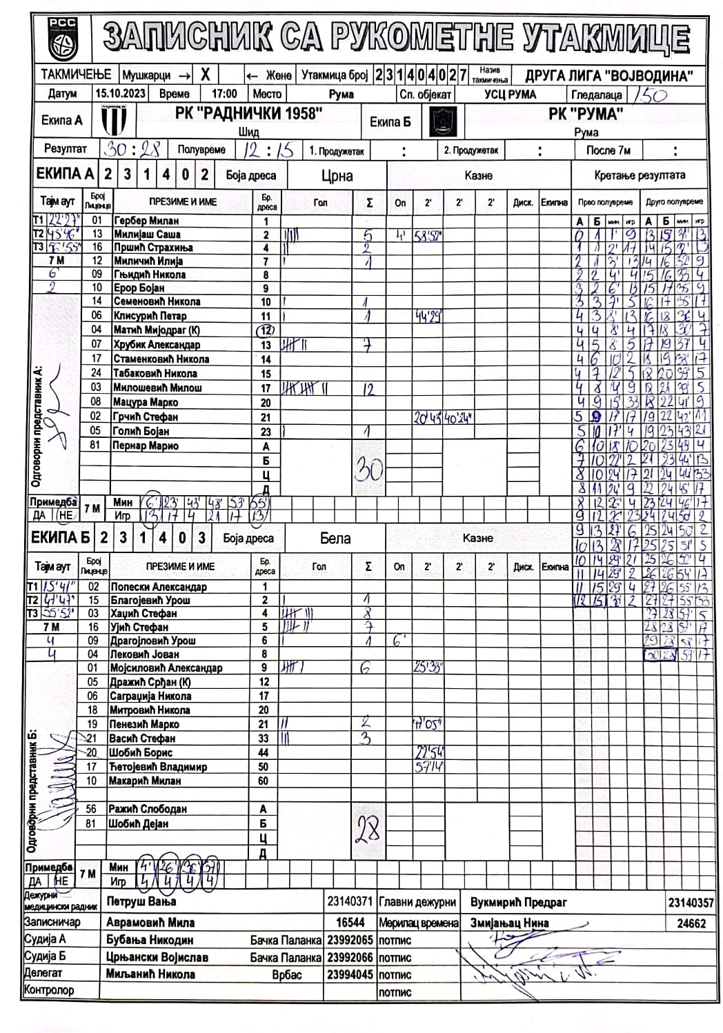| Igrač | gol | 2` | dk | MVP |