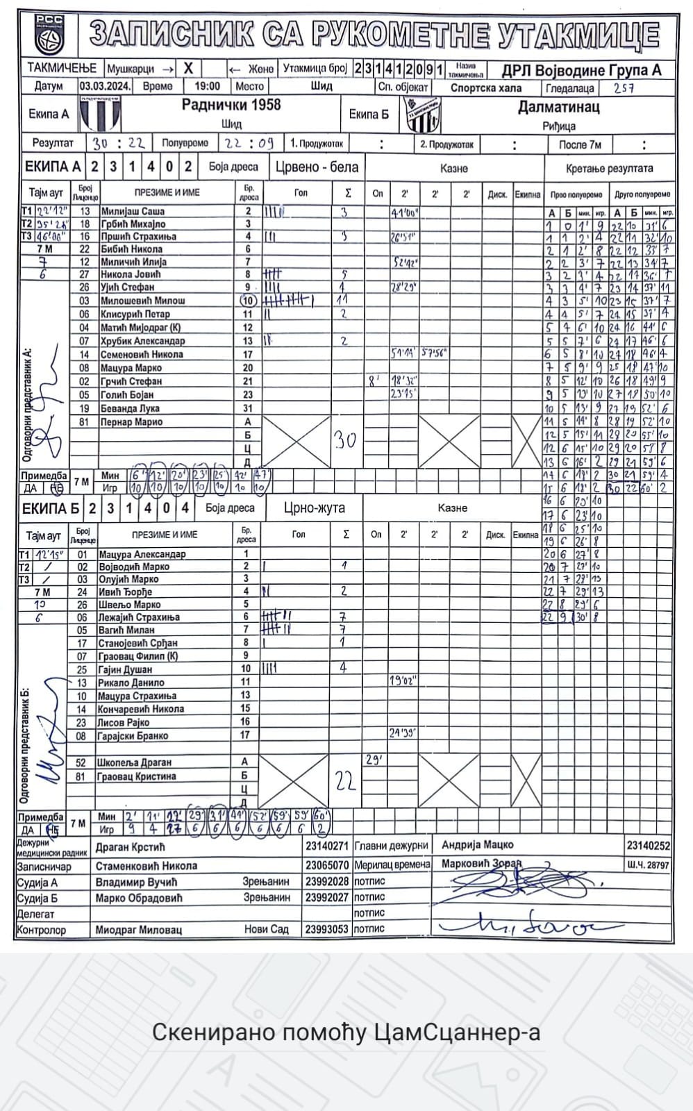 | Igrač | gol | 2` | dk | MVP |