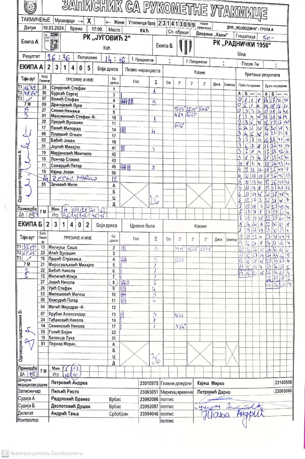 | Igrač | gol | 2` | dk | MVP |