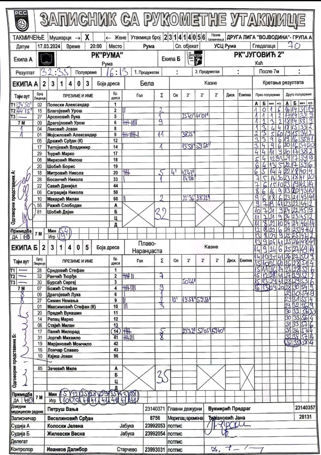 | Igrač | gol | 2` | dk | MVP |