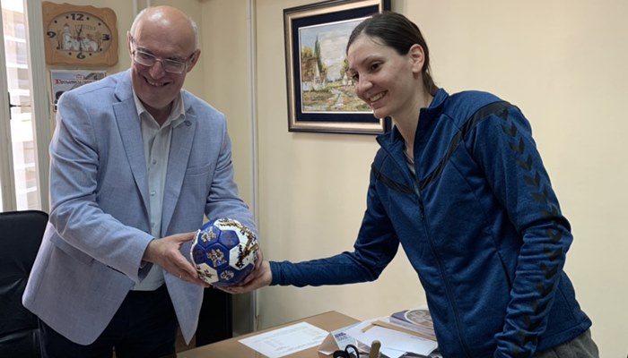 Некадашња ученица Гимназије, Јелена Лавко, повела је своје другарице Дијану Штевин, Марију и Јелену Агбабу, у обилазак своје некадашње школе. Репрезентативке је примио директор Милан Радаковић, а оне су њему поклониле лопту са потписима свих играчица у присуству професора физичке културе, нашег судијског интернационалца, Ивана Мошоринског.