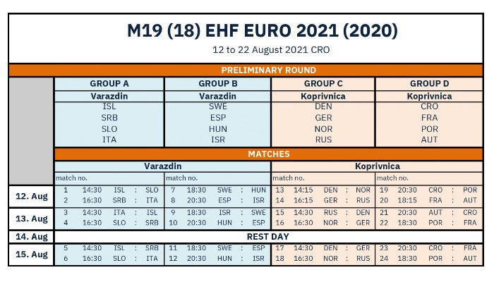 Србија ће у групи А у Вараждину одмерити снаге са селекцијама Италије, Словеније и Исланда. Утакмица са Италијом се игра већ 12. августа: