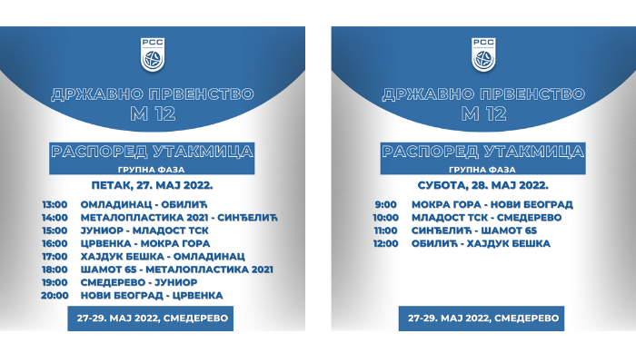 Државно првенство М12 - Смедерево, 27-29. мај 2022.