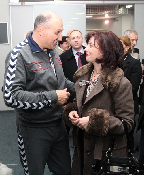 Одушевљена успехом српских рукометашица, министарка омладине и спорта, Алиса Марић, искористила је прилику и одмах после меча честитала селектору Саши Бошковићу на пласману у полуфинале Европског првенства.