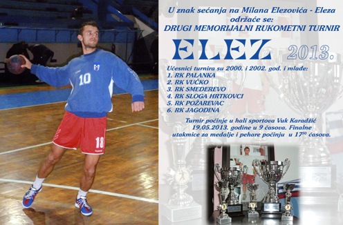 У недељу 19.05. са почетком у 9:00 часова одржаће се други по реду меморијални рукометни турнир "Елез 2013". На овом турниру учествоваће по шест екипа у две узрасне категорије.