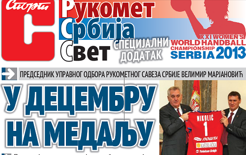 У сарадњи са Рукометним савезом Србије, ДСЛ "Спорт", објавио је у данашњем броју додатак посвећен Светском првенству за жене, које ће се наредног децембра одржати у нашој земљи. На неколико страница, можете сазнати основне информације о самом такмичењу, као и најаву жреба, који ће се одржати у суботу у Београду.