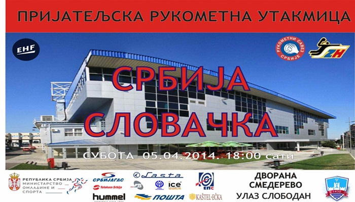 Репрезентација Словачке, биће ривал наших најбољих рукометаша у два пријатељска меча у Зрењанину и Смедереву у петак и суботу од 18 часова. Селекција која је последњи пут на великим такмичењима учествовала управо на Европском првенству у Србији 2012. године, стиже на мегдан "орловима" без тројице искусних играча - Мартина Страновског (Барселона), Чабе Шуха из Хановера и Љубомира Дуриша из Спорте Хлоховец. И поред тога, селектор Золтан Хајстер може да рачуна на квалитетан састав: