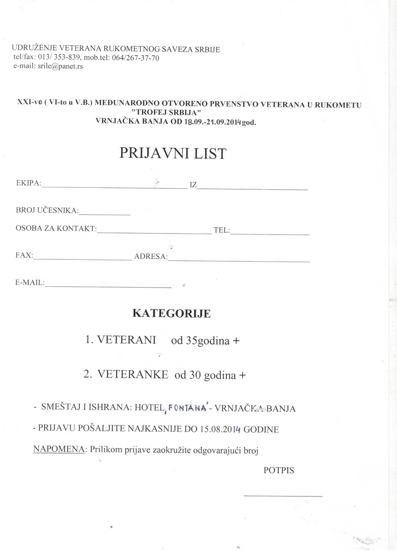 Најбољи рукометни ветерани окупиће се по 21. пут на Међународном отвореном првенству "Трофеј Србија" који ће се од 18. до 21. септембра одржати у Врњачкој Бањи.