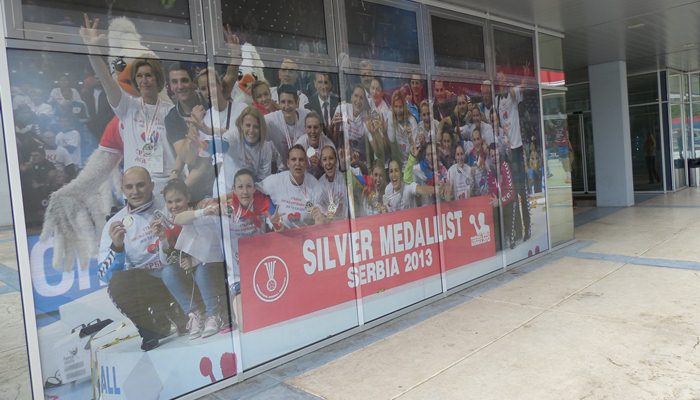 На стаклима нових просторија Рукометног савеза Србије, сви посетиоци наше будуће куће имаће прилику да се подсете освајања сребрних медаља на Европском првенству за мушкарце 2012. године, односно, Светском првенству за жене годину дана касније.