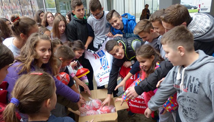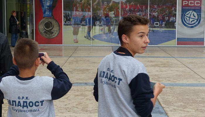 Рукометна будућност имала је прилику да види прегршт трофеја и медаља освојених протеклих деценија, а посебну пажњу су им привукле и фотографије освајача сребрних медаља из 2012. И 2013. Године са првенстава одржаних у Србији.
