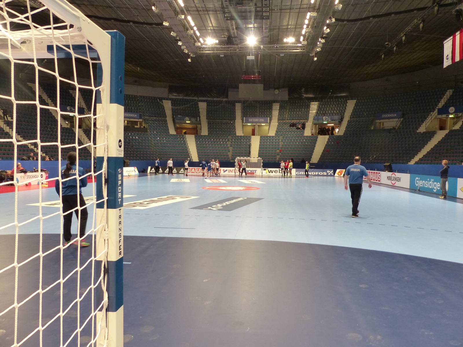 Репрезентативке Србије у доброј атмосфери одрадиле су први тренинг у Ховет Арени у Стокхолму, уједно и последњи пред уводни меч са Словенијом у недељу у 15.15 часова. Лепа дворана у шведској престоници, капацитета 8.097 места, још увек је у фази припреме за мечеве шампионата Европе, па је тако пре тренинга српских рукометашица урађена и генерална проба отварања.
