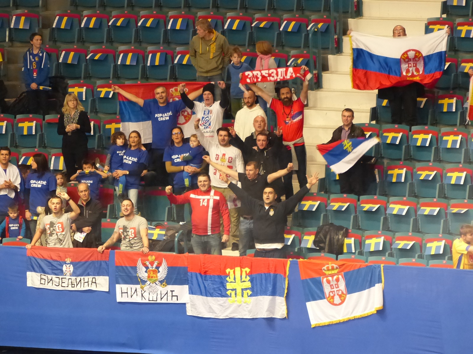 Поред Поп Лазића на трибинама је било и других српских навијача, а српске тробојке са потписом Никшића и других градова откривале су њихово порекло.