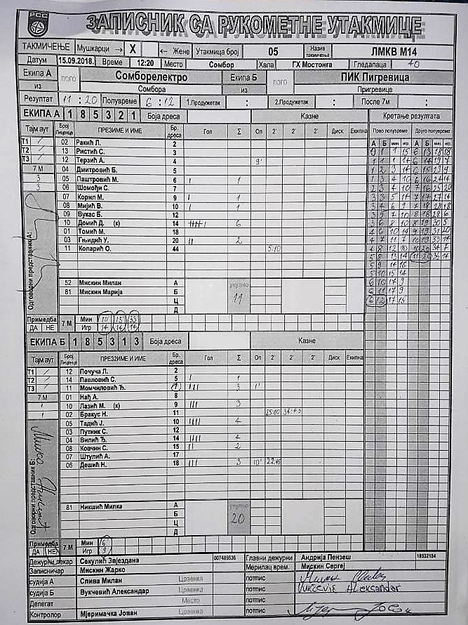 | Igrač | gol | 2` | dk | MVP |