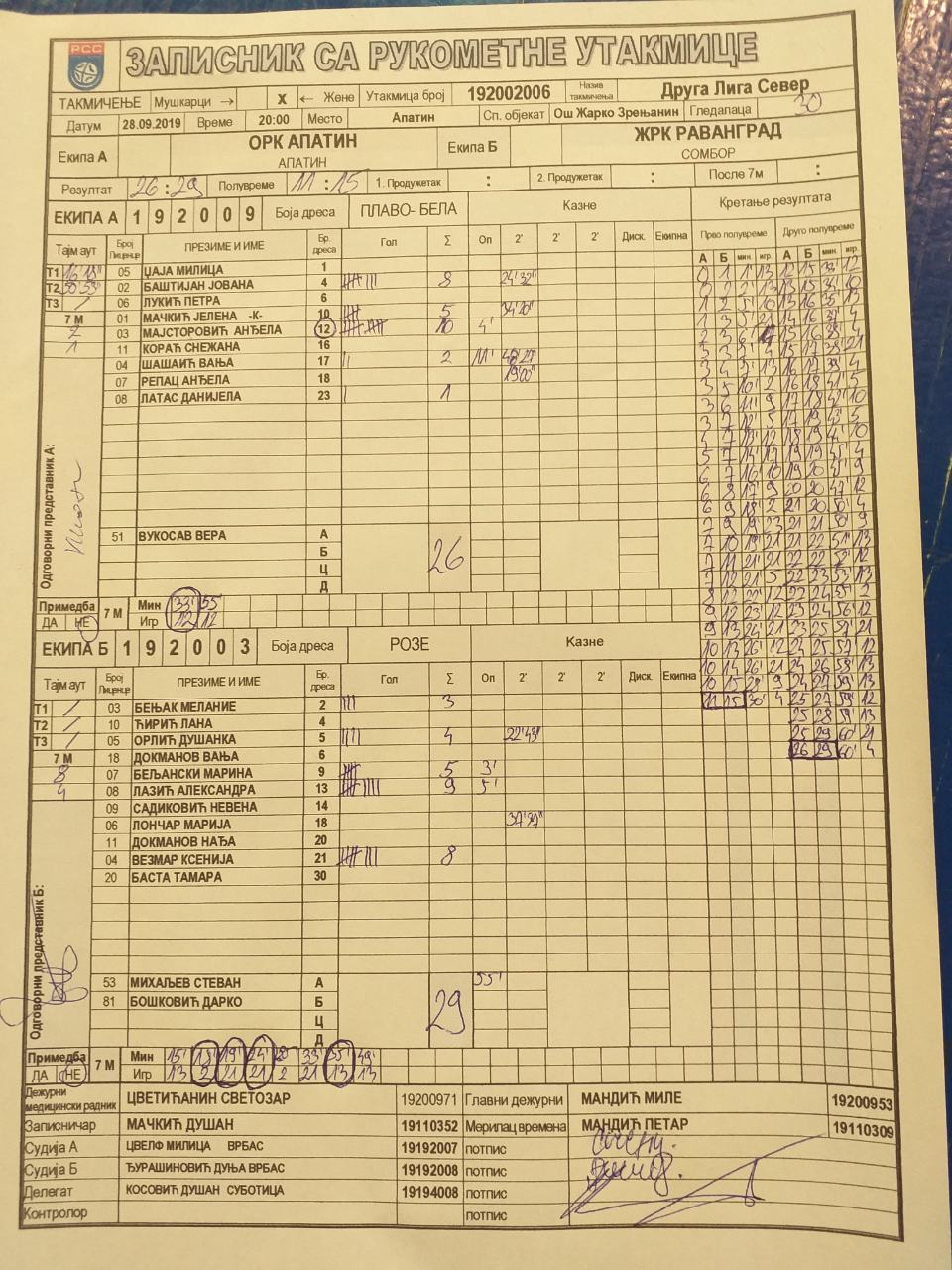 | Igrač | gol | 2` | dk | MVP |