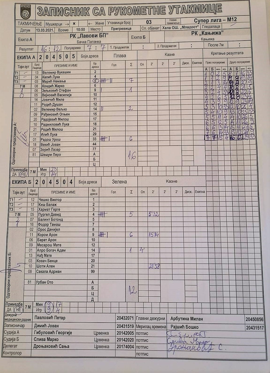 | Igrač | gol | 2` | dk | MVP |
