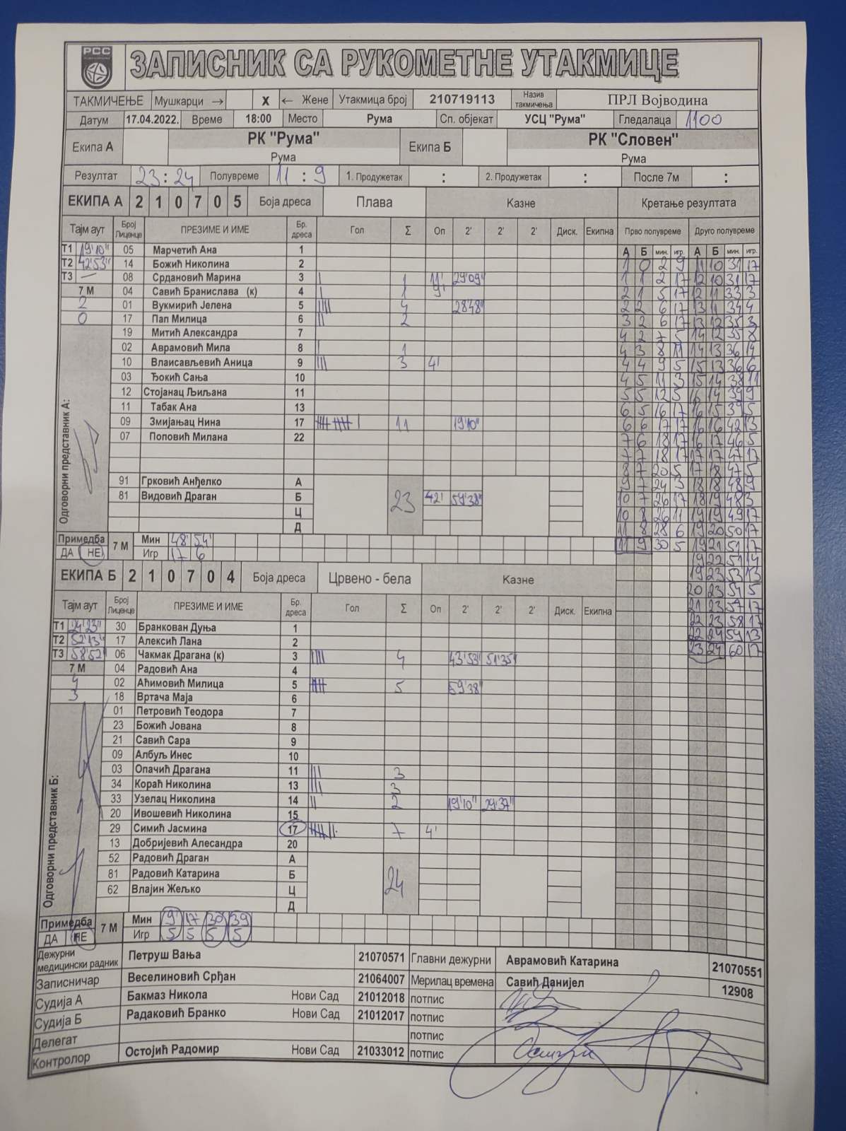 | Igrač | gol | 2` | dk | MVP |