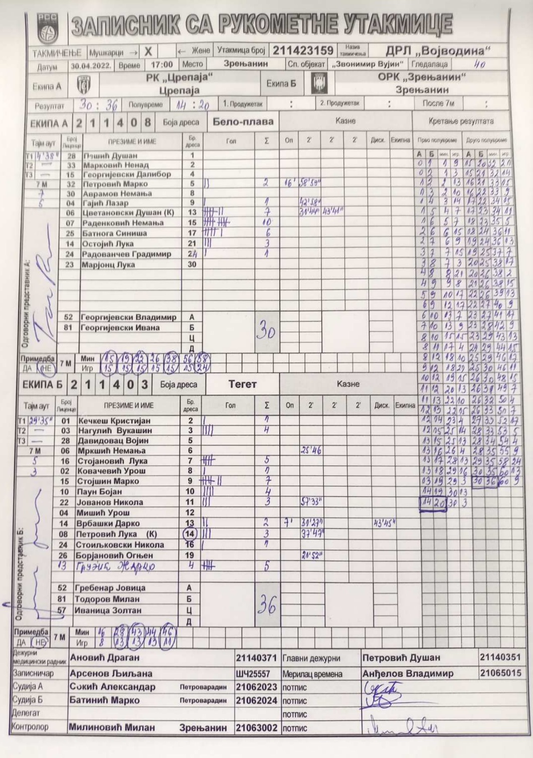 | Igrač | gol | 2` | dk | MVP |
