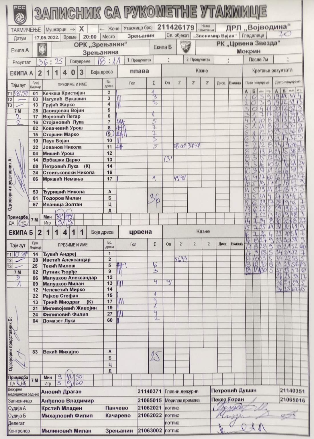 | Igrač | gol | 2` | dk | MVP |