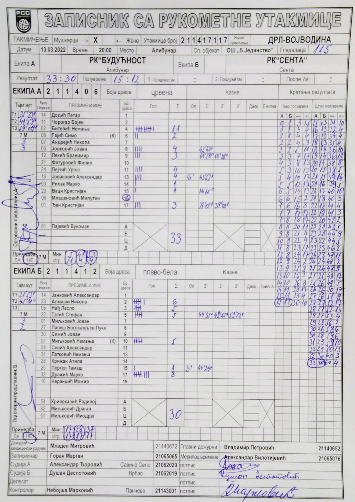 | Igrač | gol | 2` | dk | MVP |