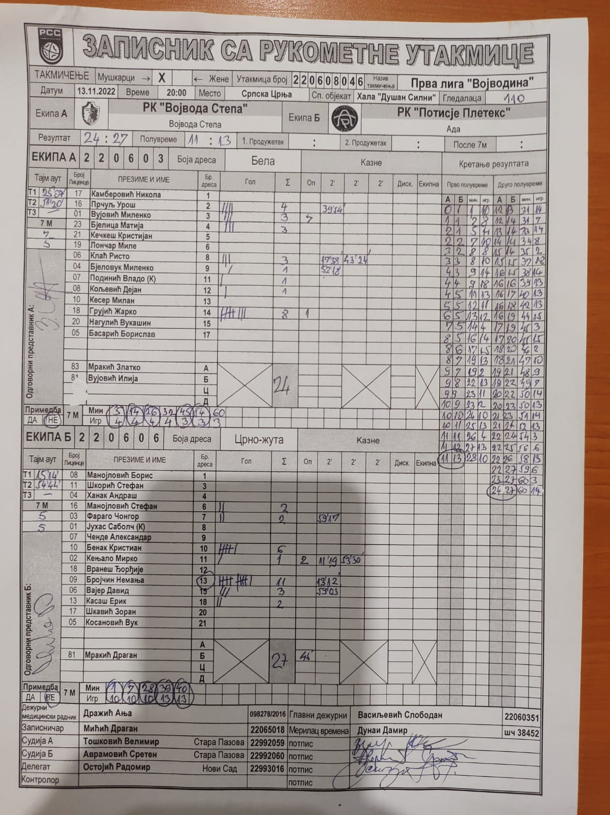 | Igrač | gol | 2` | dk | MVP |