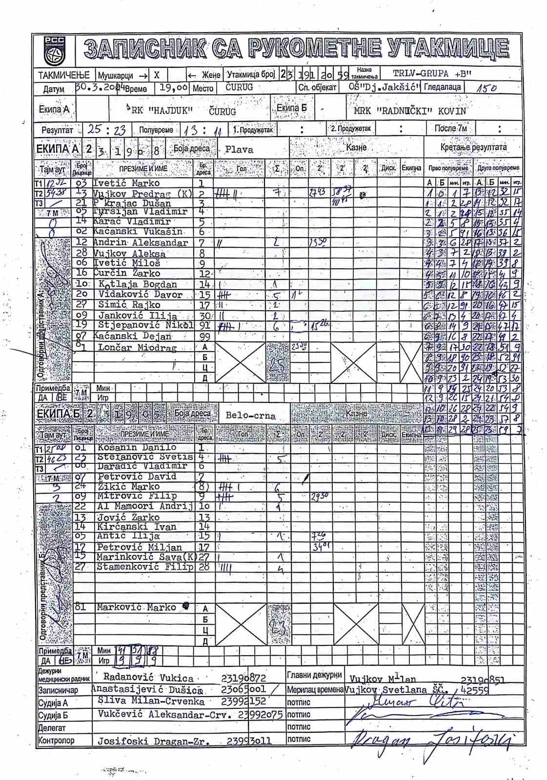 | Igrač | gol | 2` | dk | MVP |