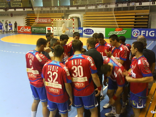 У предивној атмосфери, коју су приредили наши исељеници и чланови удружења ’’Вук Караџић’’ из Трста (њих око 1000), ’’медитеранска репрезентација’’ је успела да победи домаћу репрезентацију Италије. До 9. минута су домаћи водили, а онда је наша репрезентација прво направила 3:0 до 13. минута и до 51. минута веома разноврсном игром константно била у предности од 3-4 гола предности. У том периоду је одлично бранио Почуча који је у првом полувремену одбанио 9 лопти, док смо у нападу били опасни сасвих позиција.У наставку смо наставили са добром игром све до 50. минута када Италија користи мали пад и прелази у вођство у 51. минуту, али само накратко јер у следећем нападу Виловски изједначује, а у наредном из седмерца, који је изнудио поново Виловски, Ненадић повећава предност на 2 разлике коју је наша репрезентација задржала до краја утакмице.