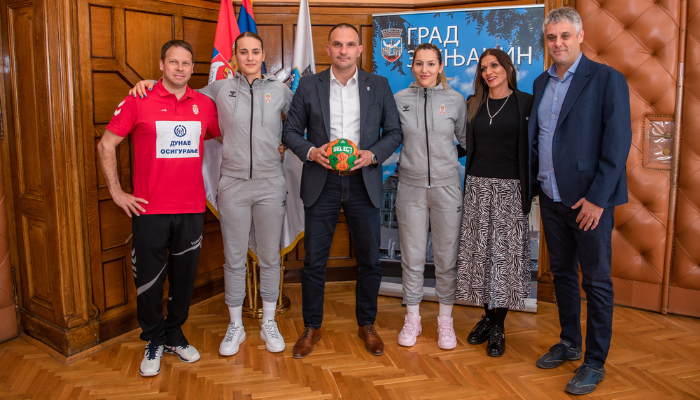 Српске репрезентативке, селектора и генералног секретара Рукометног савеза Србије Александра Брковића нешто раније је, у Градској кући, угостио и градоначелникЗрењанина Симо Салапура.