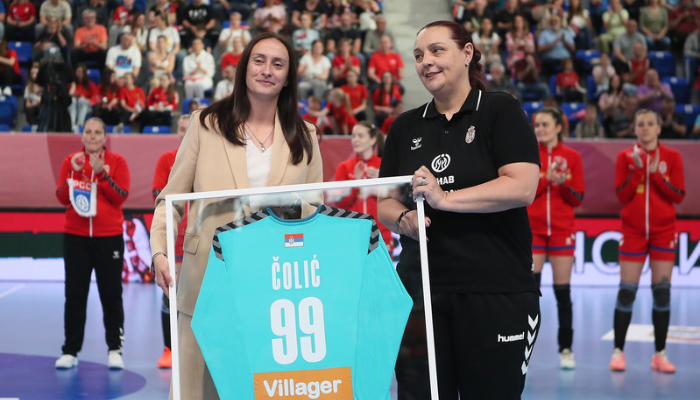 Мечу је претходило и свечано уручење урамљеног дреса Марији Чолић, голману Србије која се на Светском првенству у Данској опростила од репрезентације. Поклон јој је уручила легендарна голманка а сада тренер голмана у стручном штабу селекције Србије, Бранка Јовановић.