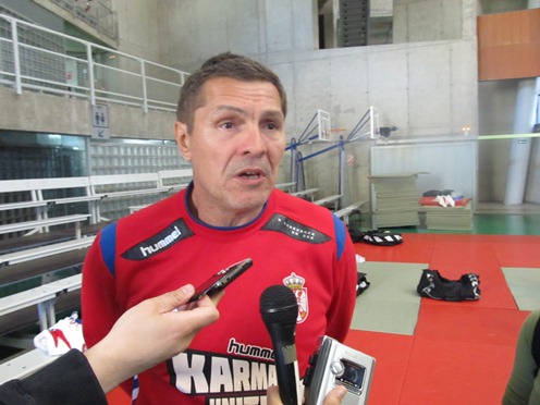 Пред почетак поподневног тренинга у помоћној сали спортског центра "Технификацион Аликанте", селектор репрезентације Србије, Веселин Вуковић, обратио се окупљеним српским новинарима и најавио уводни меч квалификационог турнира за Олимпијске игре са домаћином Шпанијом (20.15) :